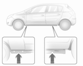 Pour les versions de Corsa OPC avec jupes latérales d'origine ou montées ultérieurement, il ne faut pas utiliser de cric. Le véhicule pourrait être endommagé.