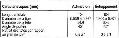 | Jeu de fonctionnement à froid (mm): adm : 0,15 - ech : 0,25. |