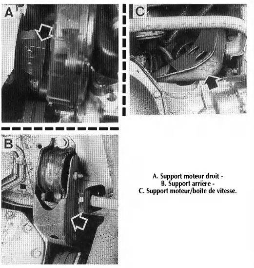 Repose de l'ensemble moteur-boite de vitessesGaz d'échappement